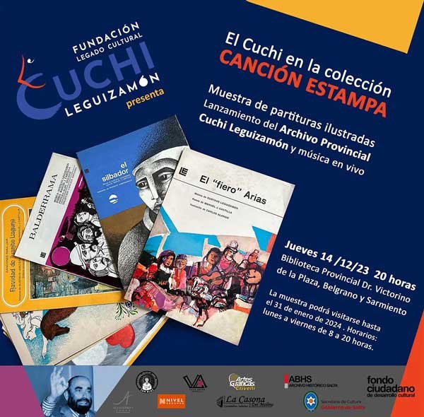 El 14 de diciembre de 2023, la Fundación Legado Cultural Cuchi Leguizamón inauguró en la Biblioteca Provincial Victorino de la Plaza la muestra «El Cuchi en la Canción Estampa». El evento, que contó con música en vivo de Gustavo Kantor y Arturo Botelli, sirvió como marco para el lanzamiento del Archivo Provincial Cuchi Leguizamón, conformado por donaciones de la familia y la fundación.